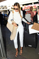 Candice Swanepoel wears all white as she makes her way through LAX Airport in Los Angeles. (March 13, 2013)